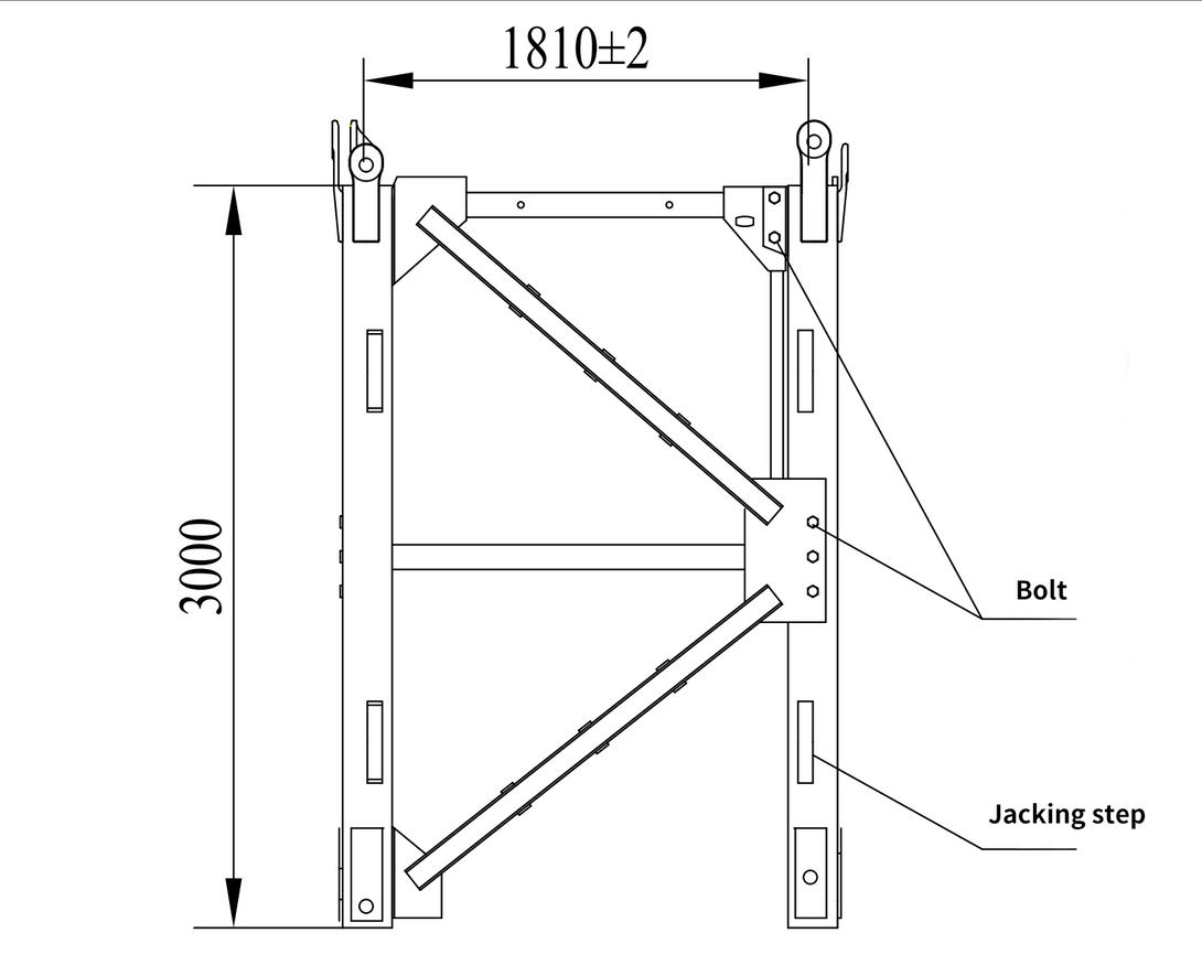 Connected by Φ55 pins, equipped with Φ20 safety pins. The assembly bolts for the mast section are M27×89 bolts with reamed holes.Features: