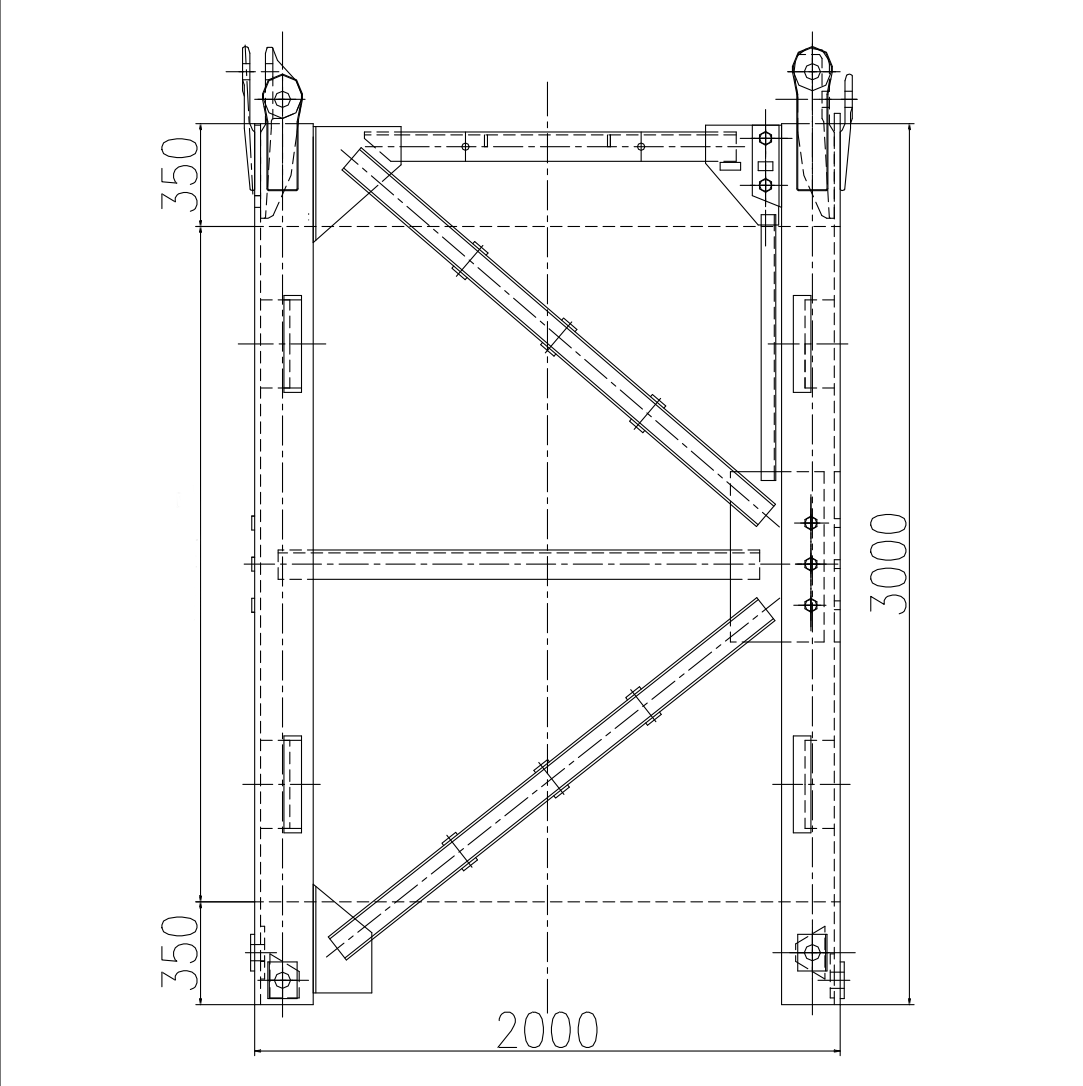 Main chords: ∠200×20 angle steel (equal-angle steel with leg length 200mm and thickness 20mm).the diagonal braces are channel steel 100 back-to-back, and the vertical web members are ∠100×10 angle steel.Connection Method: